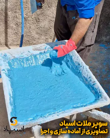 عایق استخرها و مخازن ذخیره آب: اجرای همزمان نرمهکشی و آببندی روی پلاستر سیمانی زبر