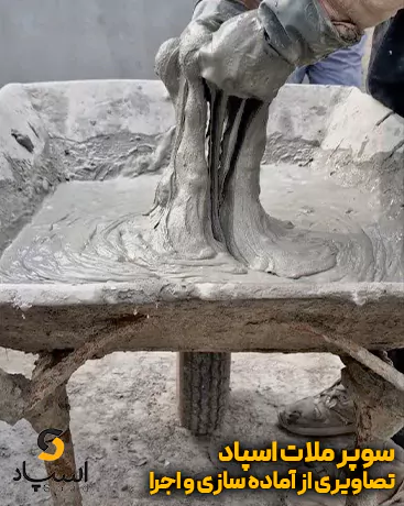 اجرای سوپر ملات: با استفاده از ماله یا تختهماله،سوپر ملات را به سطح اعمال کنید.سوپر ملات آماده شده باید ظرف ۳۰ دقیقه مصرف شود.